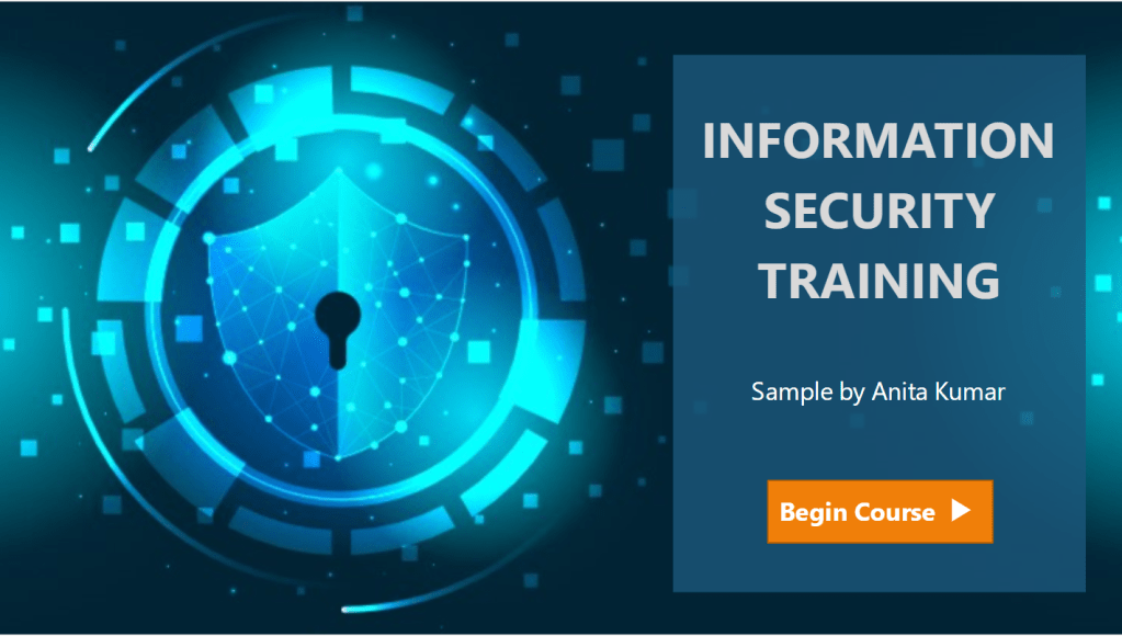 I made this short sample course to give you a glimpse of the typical slide-based courses that I create in Articulate Storyline. In this demo, you can experience all the typical elements, such as video, clickable tabs and restricted learner navigation. It also has a JavaScript-powered learning activity on passwords, which gives the learner some actual practice in creating secure passwords.